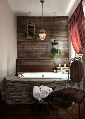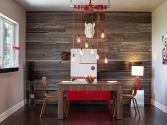 لا يمكن للطراز العلوي الحديث أيضًا الاستغناء عن تقليد الخشب على الجدران. في هذه الحالة ، يجب أن يكون النمط والسطح متشابهين قدر الإمكان مع الأشكال الطبيعية ، يمكن أن يكونا ألواحًا أو مقصورة خشبية بسطح خشن..