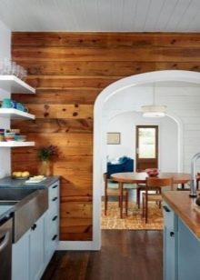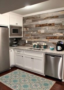 في المطبخ ، يوجد مكانان مناسبان للتزيين بزخارف خشبية – الحائط على الطاولة وخلف مجموعة المطبخ. يمكن التأكيد على منطقة تناول الطعام بورق حائط للصور ، وألواح منقوشة ، وإطار أو قطع من ظلال مختلفة. تتناسب الألوان البيضاء تمامًا مع الطراز الاسكندنافي البسيط.