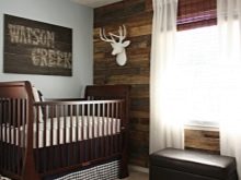 في الحضانة ، ربما لا يوجد مثل هذا الاختيار الواسع للديكور الخشبي. يمكن أن تخفف النغمات الطبيعية الباهتة من الخشب على الورق أو ورق الحائط غير المنسوج من الرسم أو الملصقات الزخرفية أو النقوش غير المزعجة ذات الطابع البحري. خيار مثير للاهتمام هنا يمكن أن يكون تقليد خشب السفن..