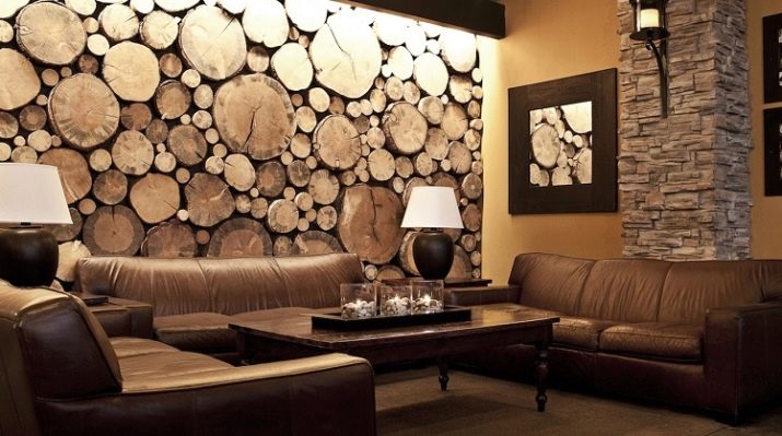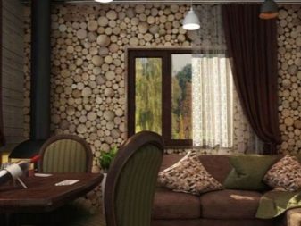 - حسب نوع الطبقة السطحية ، يمكن أن تكون ناعمة وملساء. سوف يكمل الجدار المزخرف بالصور التي تصور كومة خشبية بشكل مثالي الجزء الداخلي من غرفة الموقد. في غرفة النوم في شقة صغيرة ، ستعطي الملمس الجيد لورق الحائط الذي يقلد جدارًا من الألواح شعورًا بأنك في منزل خشبي..