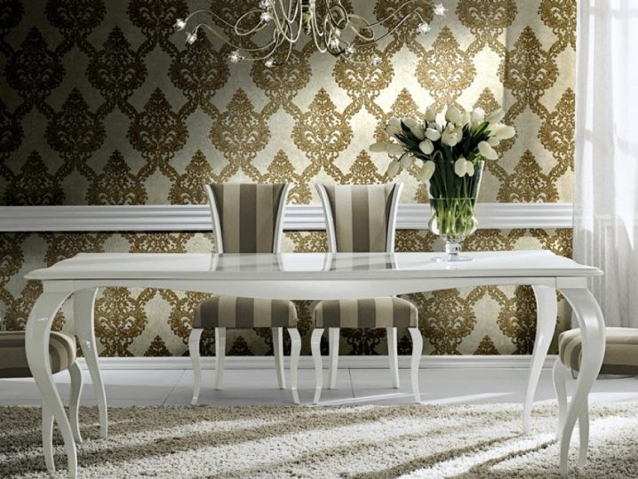 بالإضافة إلى تقليد المواد الطبيعية ، تشتمل المجموعات على نماذج مقدمة على شكل ورق مموج ، وتطريز دقيق ، وتنجيد مبطن من الساتان ، وجص قديم. يتيح لك ذلك استخدام ورق الحائط ليس فقط في التصميم الكلاسيكي ، ولكن أيضًا في التصميمات الداخلية الحديثة. وتجلب صورة الطيور والزنابق الملكية والرموز النبيلة روح الأرستقراطية إلى الرسم. في إنتاج ورق الحائط ، يتم استخدام تقنية الختم البارد والساخن ، والتي تساهم في مجموعة متنوعة من القوام. وطريقة تناثر حبيبات الكوارتز تزيد بشكل كبير من متانة ومقاومة التآكل للنماذج.