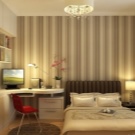 المهمة الرئيسية عند تزيين غرفة النوم هي تكبيرها بصريًا. للقيام بذلك ، يجب عليك استخدام ورق جدران من الفينيل أو الورق بألوان فاتحة فاتحة – البيج والقشدة والخوخ والأخضر والوردي والأزرق. ورق الحائط ذو الخطوط العمودية مثالي – معهم ستصبح الغرفة مجانية ومريحة.
