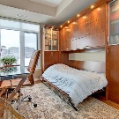 في كثير من الأحيان ، يتم إنشاء مكان عمل منفصل في غرف النوم. في مثل هذه الغرفة ، يبدو التصميم الداخلي كما يلي: