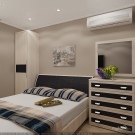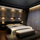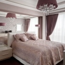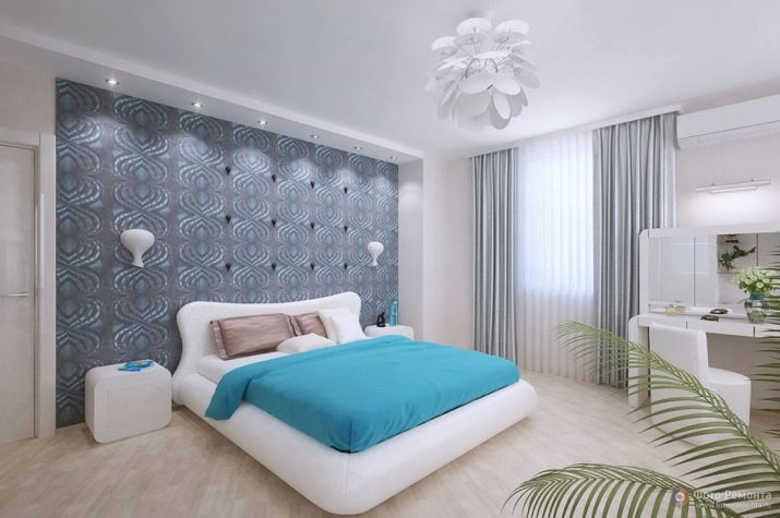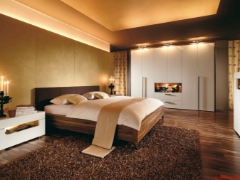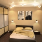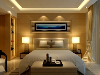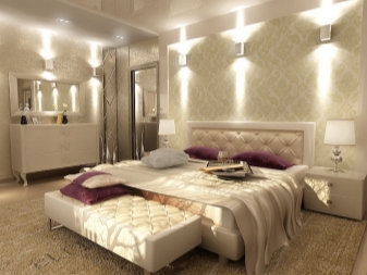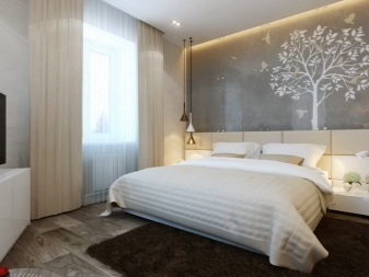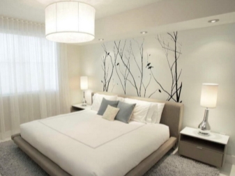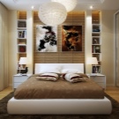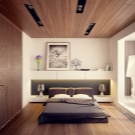 الأول والأهم هو منطقة النوم أو منطقة النوم. من الأفضل أن يكون السرير في وسط الغرفة وأن يتم تخصيص معظم الأمتار من المساحة له بشكل خاص. على جانبي السرير ، يمكنك وضع طاولات بجانب السرير ، حيث تتناسب المصابيح الليلية تمامًا. في بعض الأحيان يتم ربطها مباشرة بالجدار فوق السرير..