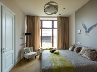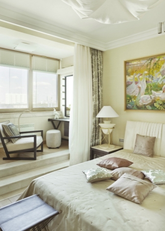 في المباني الكبيرة متعددة الطوابق والمنازل الخاصة ، يمكنك غالبًا العثور على تصميم غرفة نوم ، حيث يوجد مخرج إلى الشرفة. بالطبع ، هذه إضافة ضخمة. أولاً ، هناك المزيد من الضوء في الغرفة ، وكقاعدة عامة ، توفير صغير ، ولكن في الكهرباء. ثانيًا ، من الأسهل تهوية الغرفة. ثالثًا ، هذه فرصة رائعة لربط منطقة الشرفة بمنطقة غرفة النوم ، مما يزيد المساحة بمقدار 3-6 مربعات.
