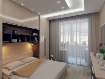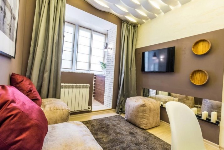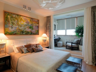 يضع بعض مالكي هذه الغرف المدمجة أريكة قابلة للطي أو سريرًا صلبًا في منطقة الشرفة ، وبالتالي تحرير وسط الغرفة. لكن من الناحية العملية ، هذا ليس مريحًا تمامًا نظرًا لحقيقة أن ضوضاء الشارع يمكن أن تستيقظ وأن أشعة الشمس لن تسمح لك بامتصاص سريرك لفترة طويلة في الصباح..
