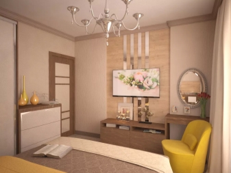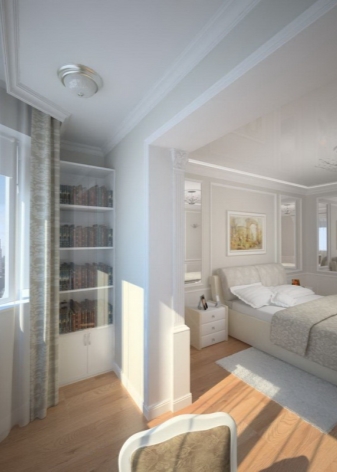 في الوقت الحالي ، غالبًا ما يتلخص تصميم الغرفة في حقيقة أن غرفة النوم مدمجة مع غرفة المعيشة أو القاعة بسبب عدم وجود غرفة منفصلة أخرى ، أو إذا تم تسليم الغرفة الثانية إلى الحضانة. يمكننا بالتأكيد أن نقول أنه سيتعين عليك تحديد منطقة مثل هذه الغرفة متعددة الوظائف. شكل الغرفة مهم أيضًا. من السهل تقسيم غرفة النوم المستطيلة إلى مناطق. سيتم إعطاء جزء واحد تحت السرير ، والآخر تحت جزء الضيف.