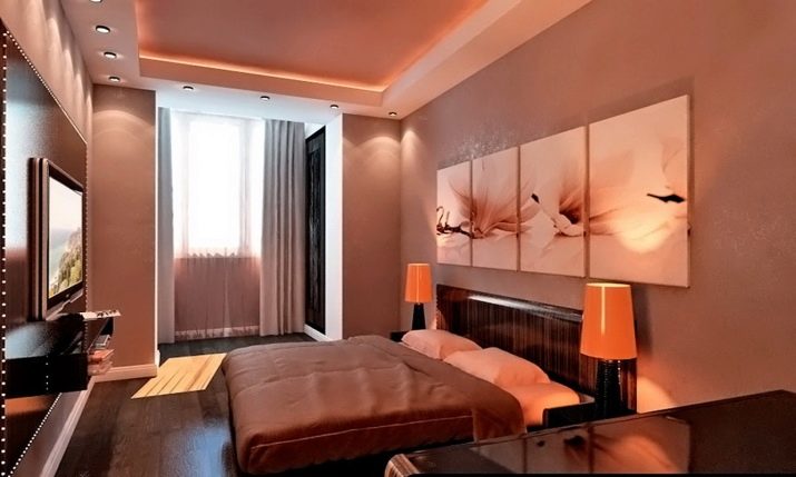في غرفة النوم الطويلة ، يمكنك وضع سرير مع لوح رأس على الحائط الضيق ، وتثبيت خزانة حائط حوله. من ناحية أخرى ، يمكنك وضع طاولة مضغوطة مع أريكة زاوية أنيقة أو كرسيين بذراعين. سيكون الجدار الطويل مكانًا جيدًا لتثبيت تلفزيون LCD. على جانبيها ، يمكنك وضع طاولات سرير ضيقة مستطيلة للأقراص المضغوطة أو الكتب.