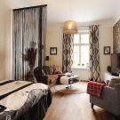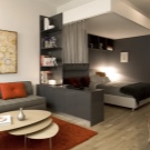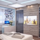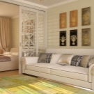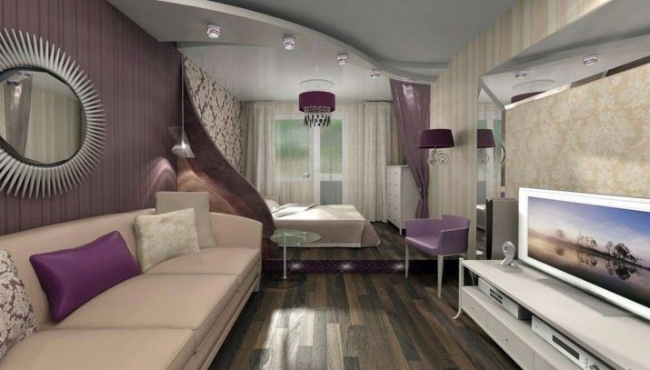 لا ينبغي أن يكون نظام الألوان في مثل هذه الغرفة مبهرجًا ، فمن الأفضل اختيار نغمات هادئة. يمكن طلاء منطقة النوم أو لصقها بورق حائط بألوان لطيفة ، ويمكن جعل الجزء الخاص بالقاعة أكثر إشراقًا ودفئًا. سيظهر هذا التقسيم البصري للغرفة..