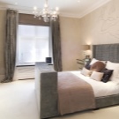 عادة ما يتم وضع السرير إما في منتصف الغرفة ، أو مع ظهر السرير بمحاذاة جدار ضيق. تتناسب طاولات السرير الصغيرة جيدًا بالقرب من السرير. يمكن للإضاءة أيضًا توحيد غرفة النوم. على سبيل المثال ، قم بدمج تركيبات الإضاءة في السقف أو قم بتركيب مصابيح أرضية طويلة. سوف ينتشر الضوء بسلاسة في جميع أنحاء الغرفة ، مما يجعلها مريحة بصريًا..