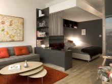 يتكون التقسيم البصري من استخدام ألوان مختلفة في التصميم ، على سبيل المثال ، يمكن قطع منطقة النوم في ظل فاتح ، أو منطقة العمل – في منطقة متباينة ، أو استخدام نسيج أو نقش. يمكنك تقسيم “الغرف” بقسم أو رف أو شاشة ، بالإضافة إلى لوح أمامي أو خزانة ذات أدراج..