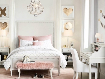 يمكن أن يختلف تصميم غرفة النوم “النظيفة” اعتمادًا على شكلها: تعتبر الغرفة المستطيلة الممدودة قليلاً هي المعيار. عادةً ما يتم وضع السرير في المنتصف ، ووضع أحجار الرصيف على جوانبه ، وخزانة ملابس فسيحة على طول الجدار المقابل للنافذة ، أو خزانة ذات أدراج أو منضدة الزينة – مقابل مسند القدم أو في بعض الزوايا.