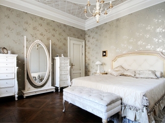 إذا تحدثنا عن الألوان ، فإن الظلال الطبيعية مفضلة هنا: الأبيض والبيج والبني. يمكن للديكور استخدام التذهيب.
