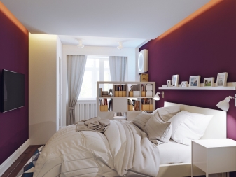 لتسليط الضوء على منطقة القراءة من داخل غرفة النوم ، يمكن تزيينها بألوان متناقضة. على سبيل المثال ، إذا كانت الغرفة نفسها بيضاء ، فيمكن أن يكون الكرسي بذراعين وخزانة الكتب باللون العنابي أو الأزرق الداكن. سيبدو حيويًا وأصليًا ويقسم الغرفة بصريًا إلى قسمين..