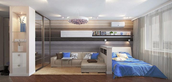 يجب أن يجمع التجديد في الغرفة بين القاعة وغرفة النوم ، لذلك يجب أن يكون لجميع الأثاث العديد من الوظائف المفيدة..