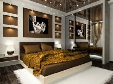 ترتيب غرفة نوم 20 مترا مربعا. م هي تجربة ممتعة للغاية. تتيح لك هذه المنطقة استيعاب أي أثاث وإكسسوارات تقريبًا دون الحاجة إلى محاولة توفير المساحة. اعتمادًا على ما تريد رؤيته في الغرفة ، يمكنك وضع سرير كبير ، وخزانة ملابس واسعة في غرفة النوم ، أو يمكنك عمل غرفة ملابس سرية. إذا قمت بتقسيم الغرفة إلى مناطق بشكل صحيح ، يمكنك إنشاء غرفة متعددة الوظائف لمختلف الأنشطة..