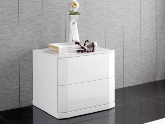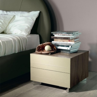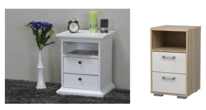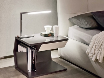 بادئ ذي بدء ، تعد طاولات السرير مريحة من حيث تخزين الأشياء اليومية: المنشورات المطبوعة ، والأدوات الحديثة ، ومستحضرات التجميل ، والمجوهرات ، وغير ذلك. إذا اخترت منتجًا مضغوطًا بدون أرفف وأدراج ، فإن أحجار الرصيف ذات الحجم القياسي من 30-40 سم سوف تتناسب بنجاح مع أي ركن بالقرب من السرير..