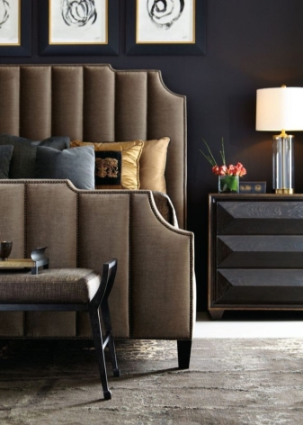 يحدث أن يتم قضاء المزيد من الوقت في غرفة النوم ، لذلك يتم إعطاء الأفضلية لهذه الغرفة في تأثيث المناطق الداخلية. يتوقف الاختيار عند أثاث أكثر اتساعًا لتخزين جميع الأشياء الضرورية بالقرب من السرير. يعتمد تصميم المنتج على إجمالي اللقطات وعبء العمل في الغرفة مع باقي الأثاث. بالنسبة للأسرة المزدوجة ، يفضل استخدام حجر الرصيف بعرض 35-45 سم.