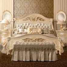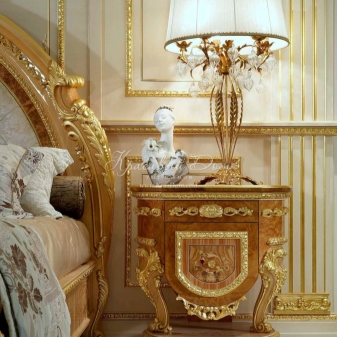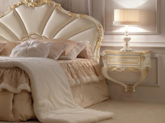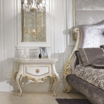 - الباروك خاص بالمساحات الكبيرة. تبدو غرف النوم المصنوعة على هذا النمط دائمًا فاخرة ومكلفة. تسود دقة ورشاقة بدوار عصر النهضة في الزخرفة. مزينة بأنماط من لآلئ الحليب أو الزهور الرقيقة أو الأحجار الكريمة. زخرفة الجص تتلألأ على الأثاث الأبيض الثلجي. في الجزء الداخلي من هذا الطراز ، توجد طاولات بجانب السرير عادةً على جانبي سرير مزدوج كبير. مصنوعة من خشب الزان أو لوح حبيبي عالي الجودة ، وسوف تكمل بنجاح التصميم الداخلي لغرفة النوم الكلاسيكية.
