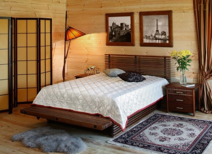 - واحدة من أكثر إثارة للاهتمام وملونة النمط العرقي. تملأ الرسومات اليابانية والصينية والأفريقية غرفة النوم بنكهة وطنية. يتم استخدام عناصر الديكور المختلفة في التصميم: المزهريات ، والدفوف ، وأواني الزهور ، والوسائد ، والحصير ، وما إلى ذلك ، تذكرنا بالشعوب ذات الطراز المقابل ، وحرفهم وهواياتهم ، وتقاليدهم وأنماط حياتهم.