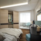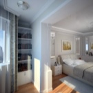 من خلال الجمع بين غرفة نوم وشرفة ، يمكنك تثبيت غرفة ملابس صغيرة على الموقع الناتج. يجب أن تكون مساحة الشرفة كافية لاستيعاب خزانة ومرآة كبيرة.