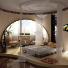 بمساعدة الستائر ، يمكنك تزيين ستارة السرير ، والتي تتوافق مع تصميم داخلي مماثل. إذا قمت بإرفاق شرفة ضيقة ، يمكنك استخدام المنصة الجديدة كمكتب أو غرفة ملابس. بالنسبة للخيار الأخير ، سيكون استخدام الستائر كافياً. قررت بعض السيدات تركيب منضدة زينة ومرآة على الشرفة..