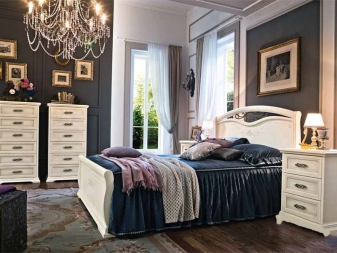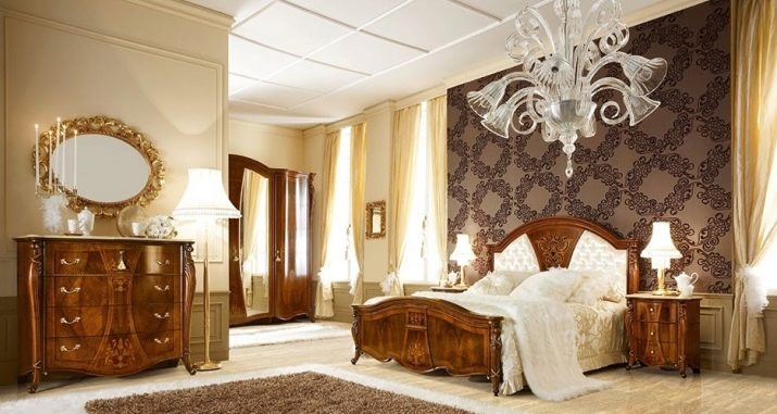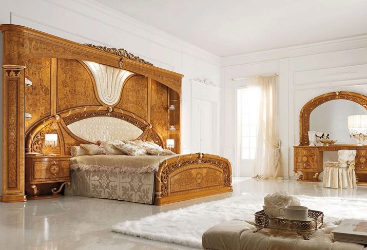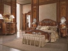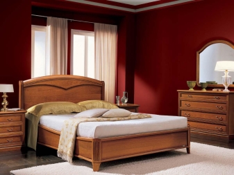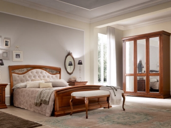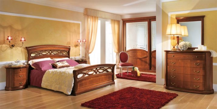 الأثاث الخشبي الصلب هو سمة ثابتة لغرفة النوم الإيطالية. يعتبر البديل انتهاكًا للمفهوم. ولكن لإضفاء المظهر العام على أصالة غرفة النوم ، يمكنك تزيين الشجرة بمساعدة مواد أخرى: