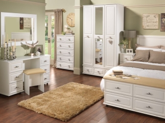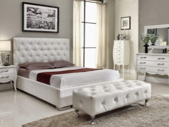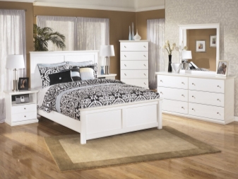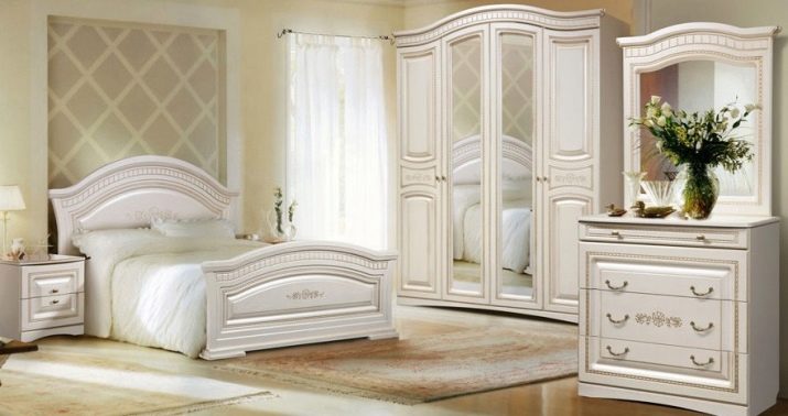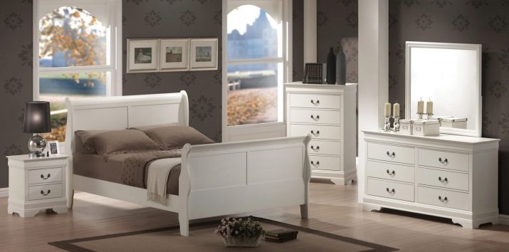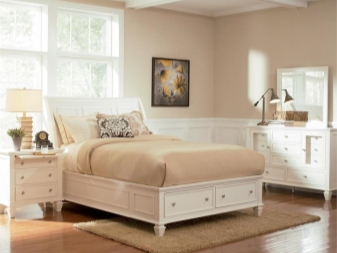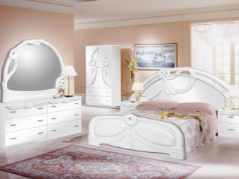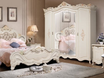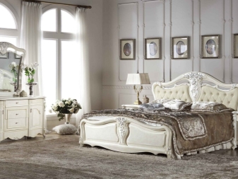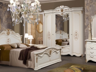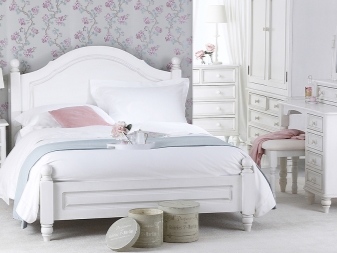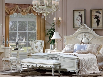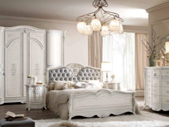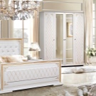 إذا كنت تريد غرفة نوم دقيقة مع أثاث منحوت يذكرنا بالمرنغ متجدد الهواء ، اختر مجموعة بيضاء صلبة. الأثاث ذو الزنجار الذهبي الفاخر يناسب أولئك الذين يعتزمون بجدية إعادة إنشاء زخرفة قصر حقيقي في الغرفة..
