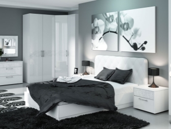 تبدو غرفة النوم البيضاء اللامعة فاخرة في أي تصميم. يستخدم المصنعون اليوم هذا النوع من التصميم ليس فقط في سماعات الرأس الحديثة. بعض الأثاث المصمم على الطراز الكلاسيكي لامع أيضًا..