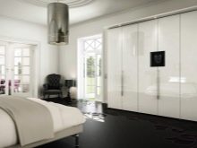 يعد الأثاث اللامع من أحدث الاتجاهات في التصميم الداخلي. يجدر الحديث عن غرفة نوم بيضاء في هذا التصميم بشكل منفصل..