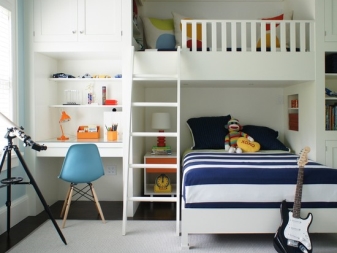يجب أن تكون أماكن النوم منفصلة بشكل مثالي. في حالة وجود مساحة صغيرة من الغرفة ، يمكنك شراء سرير مزدوج أو سرير علوي ، تم تصميمه بحيث يقع مكان العمل في الطبقة الأولى ، وتقع منطقة النوم في الثانية..