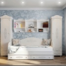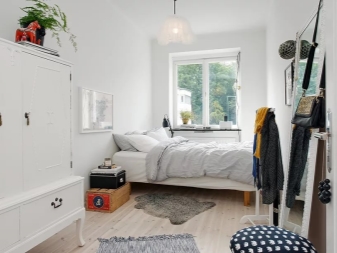 يسمح فقط بالأثاث الأبيض غير اللامع. يجدر استبعاد عناصر إضافية من الألوان الزاهية أو الداكنة جدًا من الداخل ، والتي “ستلتهم” المساحة. من الأفضل إعطاء الأفضلية للظلال الهادئة. من الأفضل شراء أثاث خزانة من النوع المعياري ، بحيث يمكنك بسهولة ، إذا لزم الأمر ، توفير مساحة إضافية أو التغلب عليها بشكل مربح.