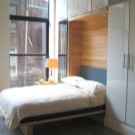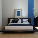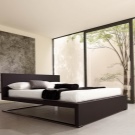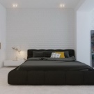يمكن أن تكون الأبواب مصنوعة من الخشب أو لها سطح مرآة أو بلاستيك. بالنسبة لغرفة النوم هذه ، فإن الأسرة المنخفضة بدون اللوح الأمامي مناسبة. من الضروري تثبيت طاولة بجانب السرير أو طاولة بالقرب منهم. لا حاجة لأي شيء آخر. حاول إبقاء مساحة الغرفة مفتوحة قدر الإمكان..