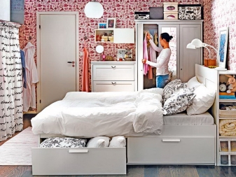 ايكيا – هذه متاجر حيث يمكنك شراء أي مفروشات. علاوة على ذلك ، لن يكون من الصعب عليك اختيار نظام ألوان واحد ونسيج واحد لكل من مشترياتك. دائمًا ما يكون المشترون راضين عن هذا الاختيار ، لأن جميع العناصر مريحة قدر الإمكان للاستخدام وعملية وآمنة.. إذا كان المشتري في النسخة النهائية غير راضٍ عن شيء ما ، فيمكنه اختيار إضافات إلى السرير على شكل: