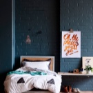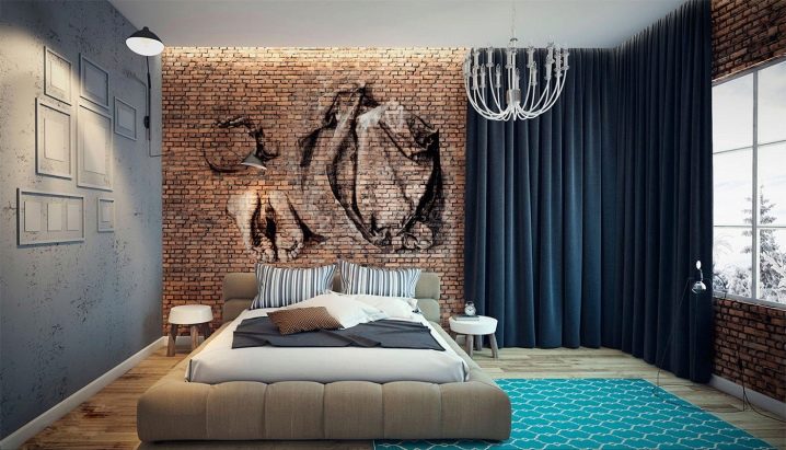 جدار من الطوب وفن الآرت نوفو – عنصرا تصميم متكاملان. يبدو الطوب الأبيض جيدًا مع أثاث عملي وبسيط للغاية ، ولكن سيتعين عليك إضافة تفاصيل مشرقة – هيكل سرير أو كرسي بذراعين أو منسوجات أو أرضية. لمنع الغرفة من الغرق في هاوية البياض والطوب ، اختر غطاء أرضي متباين – خشب أسود أو بني ، رمادي بنمط طبيعي. في هذه الحالة ، من المهم عمل جدارين أو ثلاثة جدران بلون مختلف – رمادي ، بيج ، أخضر ، أزرق أو أي صامت..