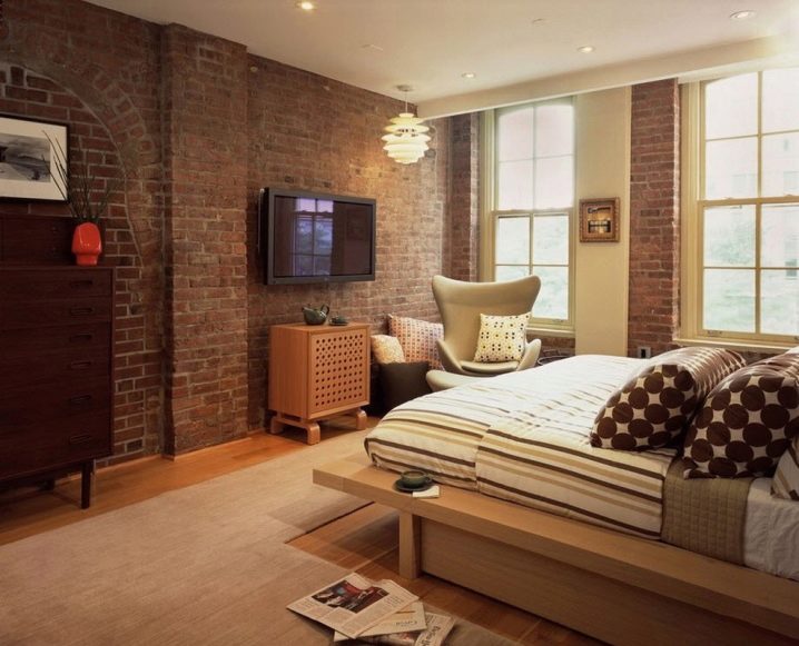 جدار من الطوب في غرفة النوم ليس فقط سمة مميزة للطراز الداخلي للطابق العلوي ، ولكنه أيضًا وسيلة للتعبير عن الذات. تبدو رائعة في غرفة نوم الفتاة أو كلاسيكية تمامًا أو حديثة أو عتيقة ، مما يضفي لمسة من الحرية والراحة على الغرفة..
