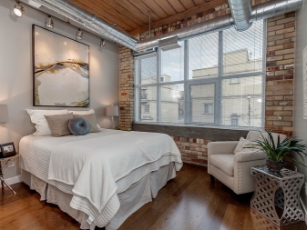 إذا كنت تصنع جدارًا من الطوب ، فضع رأس السرير معه. في هذه الحالة ، ليس بالضرورة أن يحتوي السرير على لوح أمامي. يمكنك أيضًا وضع السرير بجوار النافذة ، وبجوار الجدار يمكنك إنشاء منطقة جلوس أو تخزين. يمكنك حتى ترك هذا “الجمال” غير مفروش.
