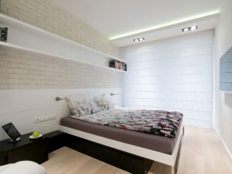 في ظروف الشقة العادية ذات الأسقف 2.70 أو 2.5 متر ، ليس من الممكن دائمًا إحياء مثل هذه الأفكار ، ولكن يمكنك تخفيف خيارات غرفة النوم المألوفة بالفعل – على سبيل المثال ، الحديثة