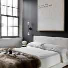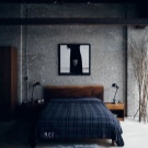 يوجد مثال آخر على التباين أدناه – يوجد هنا جدار قديم صناعي “يتماشى” مع سرير كبير مصنوع من الجلد الطبيعي والأثاث الخشبي. هذا هو التجسيد الحقيقي للكلاسيكيات الحديثة.