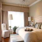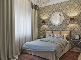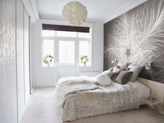 كلما كانت الغرفة أصغر ، يجب أن يكون ظل جدرانها أفتح وأكثر شحوبًا. يسمح لك اللون الرئيسي واللهجات الموضوعة بشكل صحيح بتغيير نسب غرفة النوم بصريًا: بالنسبة للغرفة الضيقة ، اختر خطوطًا عمودية على أحد الجدران ، بالنسبة للغرفة ذات الأسقف المنخفضة – الخطوط العمودية.