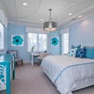 يبدو اللون الأزرق جيدًا على الحائط اللامع ، فهو يقول حرفيًا أن الغرفة تخص الصبي.