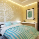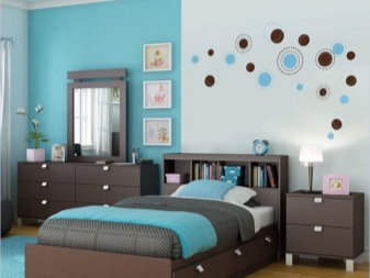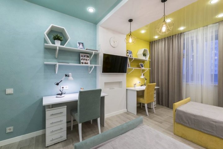 إذا لم تكن الغرفة تحتوي على سرير فحسب ، بل تحتوي أيضًا على مكتب به أرفف كتب ، فمن الأفضل تقسيمها إلى مناطق وطلاء كل جدار في الظل الخاص به ، دون أن تنسى الحفاظ على النمط العام في غرفة النوم.