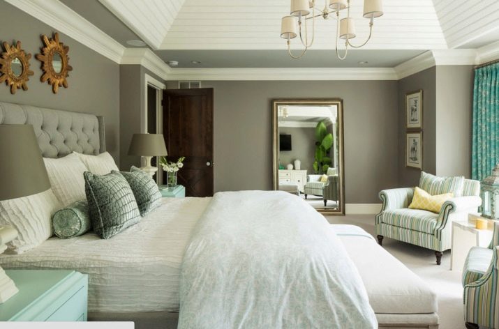 ابدأ من الغرض من الغرفة: إذا تم إنشاؤها خصيصًا للنوم ، فاختر أي ظل هادئ وحتى مظلم – فهو يهدأ جيدًا. إذا كانت غرفة النوم أيضًا عبارة عن غرفة معيشة ومكتب ، فيجب أن تكون مصنوعة حصريًا بألوان فاتحة..