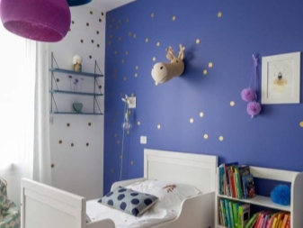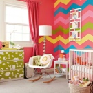 يمكنك طلاء الجدران في الحضانة بألوان زاهية – اختر ظلًا واحدًا كأساس واختر بمهارة إضافة إليه. أعط الأفضلية للأصفر والأخضر والوردي والأزرق مع مسحة رقيقة. لكن أولاً ، حدد أسلوب الغرفة ، مع مراعاة جنس الطفل – يحب الأولاد والبنات ظلال مختلفة تمامًا.
