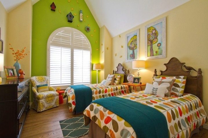 في غرفة نوم الأطفال ، ينصح علماء النفس برسم الجدران بظلال محايدة – الخوخ والخزامى والأزرق والأخضر الفاتح والأصفر ، لأنها تخفف التوتر والتهيج وتهدئة ولها تأثير مفيد على نفسية الطفل الهشة..