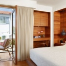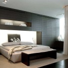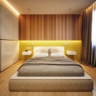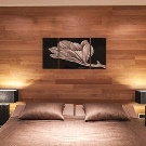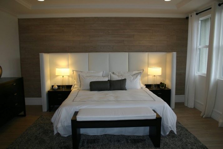تبدو الصفائح في غرفة النوم على الحائط غير عادية ، لكنها تحولها إلى ما هو أبعد من التعرف عليها. عادةً ما يكون الجدار الموجود على رأس السرير فقط مزينًا بألواح مغلفة. في بعض الأحيان ، يقومون أيضًا بتزيين جزء من السقف فوق السرير ، مما يؤدي إلى تكوين شبه بالداتشين. يُنصح باختيار الألواح لتتناسب مع لون الأثاث من أجل خلق شعور بمجموعة صلبة..