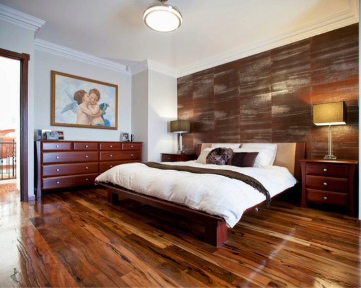 اليوم ، يتم استخدام اللامينيت لأكثر من مجرد الأرضيات. بشكل متزايد ، في التصميم الداخلي ، يمكن رؤيته على الحائط في غرفة النوم. يحظى هذا الحل الأسلوبي الأصلي بشعبية نظرًا لسهولة استخدامه ونتائجه الممتازة..