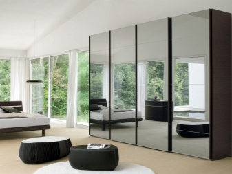 المرآة ضرورية أيضًا في غرفة النوم ، خاصةً إذا تم تركيب خزانة ملابس فيها.. غالبًا ما تستخدم المرايا المخفية في هذه الغرفة. يتم تثبيتها بشكل أساسي خلف أبواب الخزانة. لكن في بعض الأحيان تكون الأبواب نفسها مزينة بمرآة. في هذه الحالة ، سيساعد الأثاث على زيادة المساحة بصريًا..