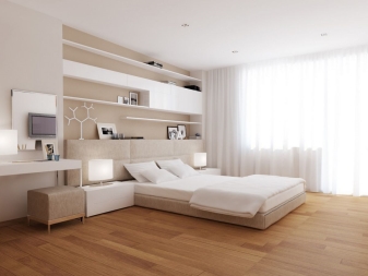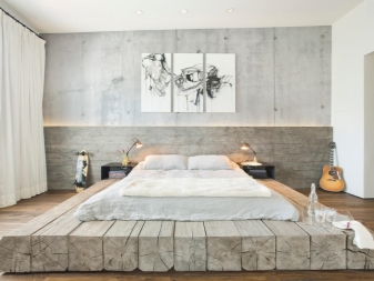 - سرير المنصة – خيار جيد لغرفة نوم بأسلوب بسيط. في الوقت نفسه ، لا يلزم وجود أثاث آخر في غرفة النوم..