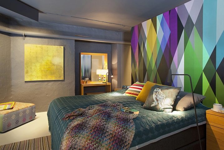 يلعب اللون في غرفة النوم دورًا مهمًا. بمساعدة ذلك ، يمكنك إنشاء تصميمات مختلفة تمامًا تجلب أفكارًا معينة إلى رأسك. غالبًا ما تستخدم ألوان الباستيل أو الباهتة في غرفة النوم ، وتستخدم الألوان الزاهية فقط في شكل لهجات. لكن في بعض الأحيان يستخدم المصممون ظلال براقة..
